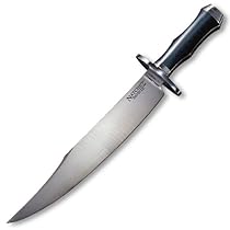 Cold Steel Natchez Bowie KnifeBy MuscoeIf you are looking for a "BIG" knife for camp chores, chopping, prying, etc., you would be hard pressed to find a better choice in the price range. Another review mentioned the Natchez as a fighting knife. It is very well balanced and sharp. I don't know much about knife fighting but I'd rather use a Colt model 1911 45 ACP caliber in a knife fight!!! If you are looking for a knife that will be used for hard work and last several life times, I recommend the Natchez Bowie. The only negative is the sheath. Although authentic and very well made, it doesn't have a belt loop. It's made to slide between a belt/sash and your pants, and has a metal "nipple" to keep it from sliding out. I had a custom sheath made for me with a belt loop and several other features I wanted.2 of 2 people found the following review helpful. » Continue Reading about Cold Steel Natchez Bowie Black Linen Micarta Handle (Leather Sheath).